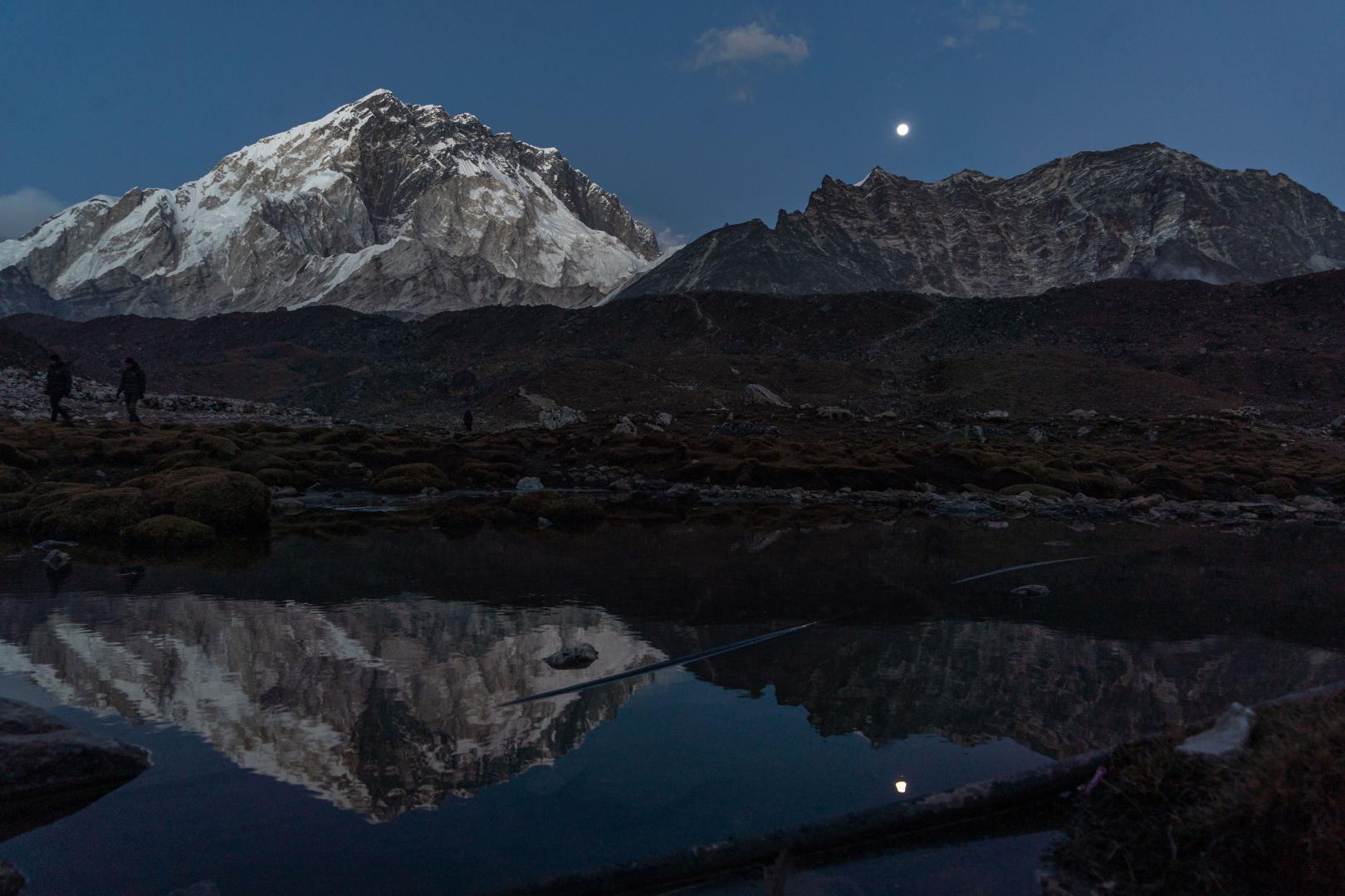 Start before dawn for a sunrise climb of Kala Patthar, which offers the best close-up view of Everest. Watch the golden light hit the summit of the world’s highest peak, along with views of Pumori and the Khumbu Icefall. After descending, trek back down to Lobuche for the night.