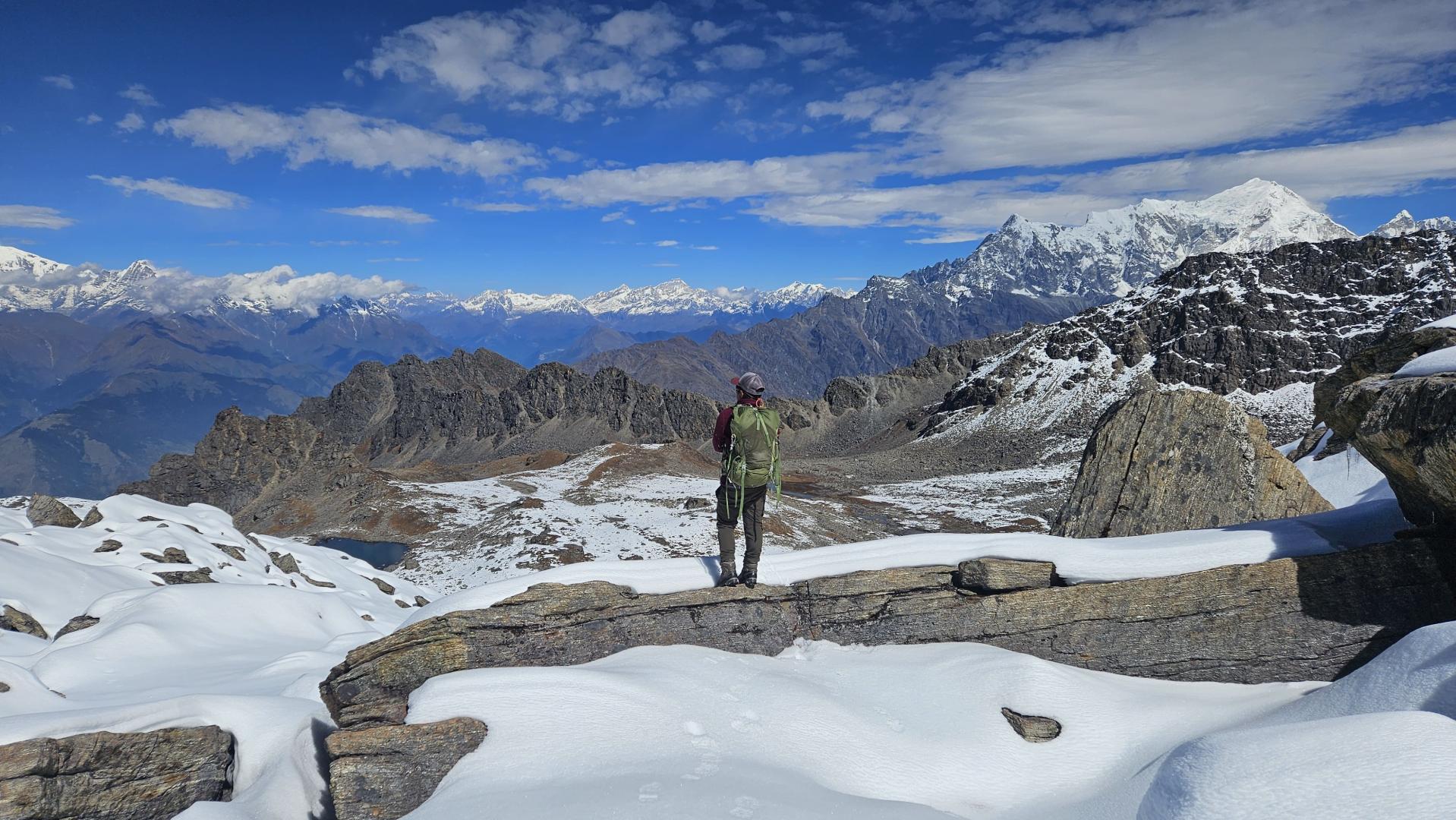 A long, challenging but rewarding day. Begin early (pre-dawn). The climb to Larkya La is steep and cold, but the views of Himlung, Kang Guru, and Annapurna II are spectacular. Descend to Bimthang, a beautiful valley with glaciers and peaks.
