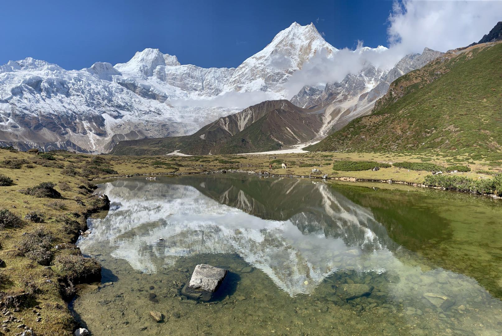 Trek through alpine meadows, yak pastures, and charming stone villages. Arrive in Samagaon, a beautiful Tibetan village with spectacular views of Manaslu.